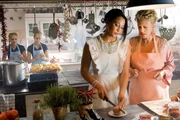 Hanni und Nanni (Jana und Sophia Münster) wurden zum Küchendienst verdonnert und beobachten, wie Köchin Daphne Diehl (Barbara Schöneberger, re.) eine neue Küchenhilfe auf Herz und Nieren prüft.Bild: © ZDF/Gordon Mühe
