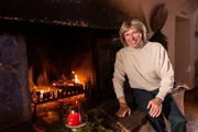 Hansi Hinterseer in einer gemütlichen Weihnachtlichen Stube vor Kaminfeuer während der Dreharbeiten für die Sendung "Weihnachtslichter"