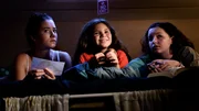 Kim (Kiki Wartena), Jip (Layla Zara Seme) & Julia (Serena Bank) müssen im Wohnmobil bleiben und tuscheln miteinander, was mit Papa los sein könnte.Bild: © NDR/Pief Weyman