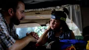 Jip (Layla Zara Seme) ist auf den Camper geklettert und hält Ausschau nach Bären.Bild: © NDR/Pief Weyman