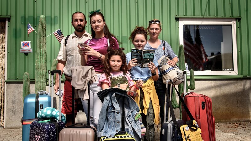 Jip (Layla Zara Seme, Mi.) und ihre Familie ist in Amerika angekommen und wartet auf ihren Miet-Camper.Bild: © BR