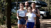 Jip (Layla Zara Seme, Mi.) und ihre Familie ist in Amerika angekommen und wartet auf ihren Miet-Camper.Bild: © NDR/Pief Weyman