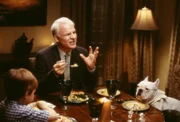 Um die milliardenschwere Mrs. Arness für die Kanzlei zu gewinnen, lädt Peter (Steve Martin) sie zu einen familiären Dinner nach Hause ein. Ausgestattet mit einem fetten Hund samt Halskrause und dem Namen "William Shakespeare", der am Tisch mitessen darf, trudelt die potentielle Klientin ein - und bekommt es prompt mit Charlene zu tun ...Bild: © Touchstone Pictures