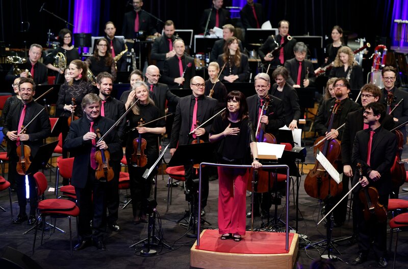 Was haben die Beach Boys, Adele und Die Simpsons gemeinsam? Hazel Brugger verrät es Ihnen - und bringt gemeinsam mit dem WDR Funkhausorchester die Kölner Philharmonie mit ihrem ganz persönlichen Mixtape in Stimmung. Die Playlist der Comedienne, Slam-Poetin und Moderatorin ist ein echter Gute-Laune-Mix: Schnell, beatlastig und rhythmisch schmeißt sie uns vom Club in die aktuellen Charts bis zurück ins Jugendzimmer der 1990er-Jahre. - Dirigentin Sarah Hatsuko Hicks und das WDR Funkhausorchester.Bild: © WDR/Thomas Brill