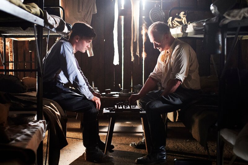 ARD/NDR HELMUT SCHMIDT - LEBENSFRAGEN, am Montag (23.12.13) um 21:45 Uhr im ERSTEN. Helmut Schmidt (Ludwig Blochberger) im Gefangenenlager mit Hans Bohnenkamp (Falk Rockstroh).