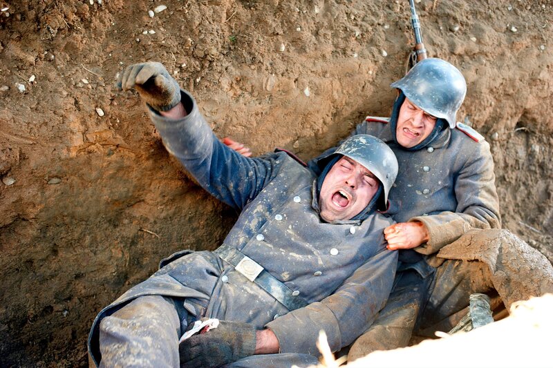 ARD/NDR HELMUT SCHMIDT - LEBENSFRAGEN, am Montag (23.12.13) um 21:45 Uhr im ERSTEN. Helmut Schmidt (Ludwig Blochberger) und Cato Bontjes van Beek (Luise Heyer) im Schützengraben an der Ostfront.