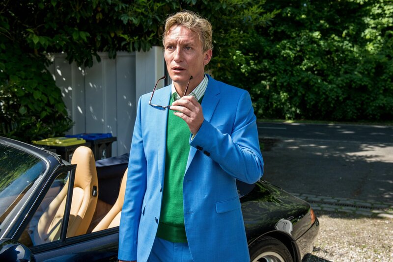 Als Claus (Oliver Masucci) von der Arbeit kommt, entdeckt er in der Einfahrt zu seinem Haus zahlreiche Kameras und ein verschlossenes Tor. Bartos hat sich Sorgen um die Sicherheit der Müller-Todts gemacht und zahlreiche Überwachungsmaßnahmen installiert.Bild: © LEONINE Studios