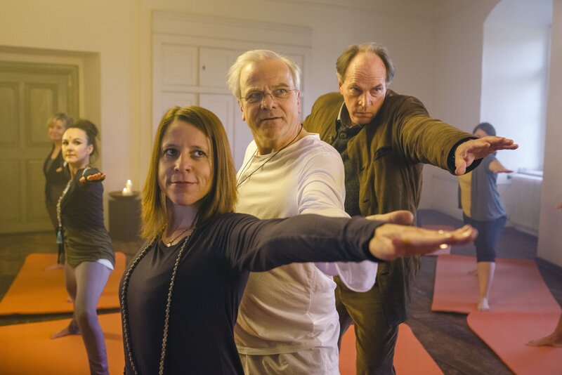 Yoga mit Langhammer (Bernhard Schütz, Mitte) und Kluftinger (Herbert Knaup, rechts).Bild: © ARD Degeto/BR/ARD Degeto/Hendrik Heiden