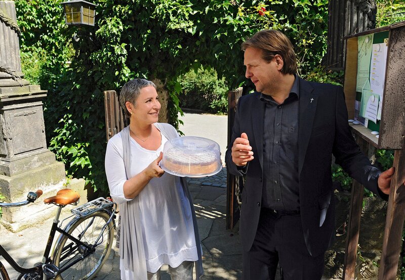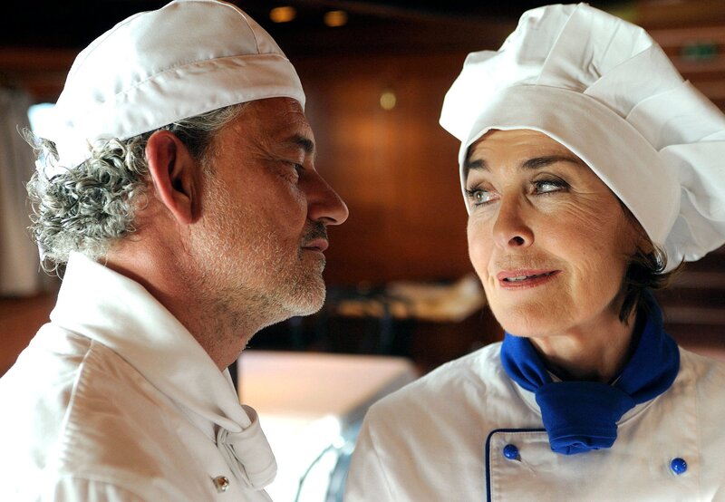 Carola Bleibtreu (Katerina Jacob) merkt, dass zwischen Maria Lieblich (Thekla Carola Wied, links) und Ernst Geyer (Rolf Kanies, rechts) nicht nur die Küchenarbeit stimmt.