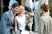 Paula (Suzan Anbeh, M.) erhält eine Einladung - ausgerechnet zur Hochzeit ihrer großen Liebe Jan (Tim Bergmann, r.), der sie vor acht Jahren einfach hat sitzen lassen! Das ist die Gelegenheit, ihm eins auszuwischen, indem sie ihren perfekten, in Wahrheit aber nicht vorhandenen Verlobten präsentiert. Da kommt ihr Nachbar Ben (Janek Rieke, l.) gerade recht...