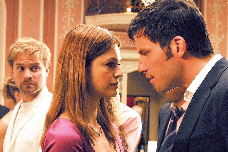 Allen Warnungen zum Trotz kann sich Paula (Suzan Anbeh, M.) dem Charme ihres Ex (Tim Bergmann, r.) nur schwer entziehen - sehr zum Missfallen von Ben (Janek Rieke, l.), der sich ernsthaft in Paula verliebt hat ...