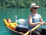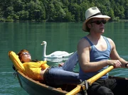 Janosch (Roland Koch) beginnt sich ernsthaft für Caroline (Aglaia Szyszkowitz) zu interessieren und führt sie zu einer Bootsfahrt aus. Solange Caroline nicht von ihren Erinnerungen an frühere Erlebnisse auf diesem See anfängt, ist auch alles wunderbar.Bild: © SWR/epo-film/Stefan Haring