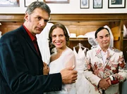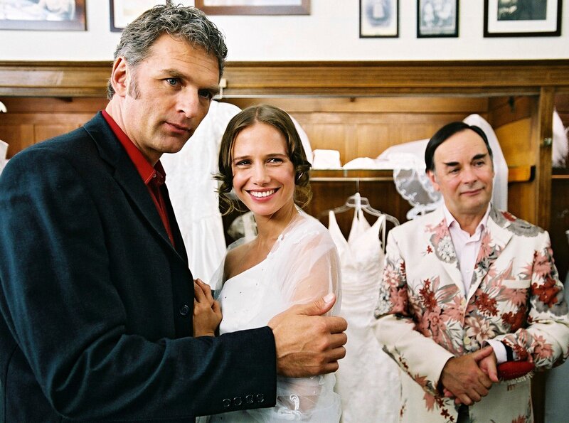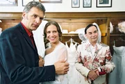 V. l. n. r.: Robert (Walter Sittler), Yvonne (Nadeshda Brennicke), Brautmoden-Verkäufer (Johann Adam Oest).Bild: © ORF, Stefan Haring / ZDF