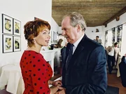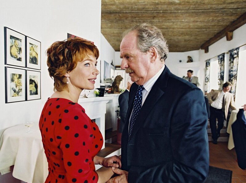 Soso, der Mann, den Caros Freundin "Bärli" nennt, ist also der ehrenwerte Georg Lünemann (Friedrich von Thun), Vater der Braut. Caroline (Aglaia Szyszkowitz), selbst in nicht ganz einwandfreier Rolle bei der Verlobungsfeier ihres Ex-Manns, hat Georg Lünemann gegenüber eindeutig Oberwasser!Bild: © SWR/SWR/epo-film/Stefan Haring