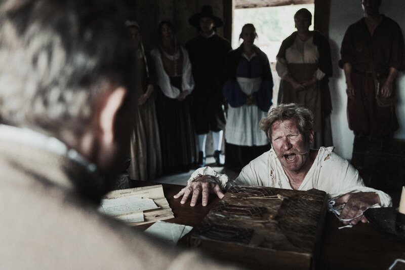 Nachgestellte Szene: Diedtrich Flade vor Gericht. Auf den Knien und um sein Leben flehend nachdem er der Hexerei beschuldigt wurde +++ Die Verwendung des sendungsbezogenen Materials ist nur mit dem Hinweis und Verlinkung auf RTL+ gestattet. +++Bild: © RTL / Dash Production Services LTD