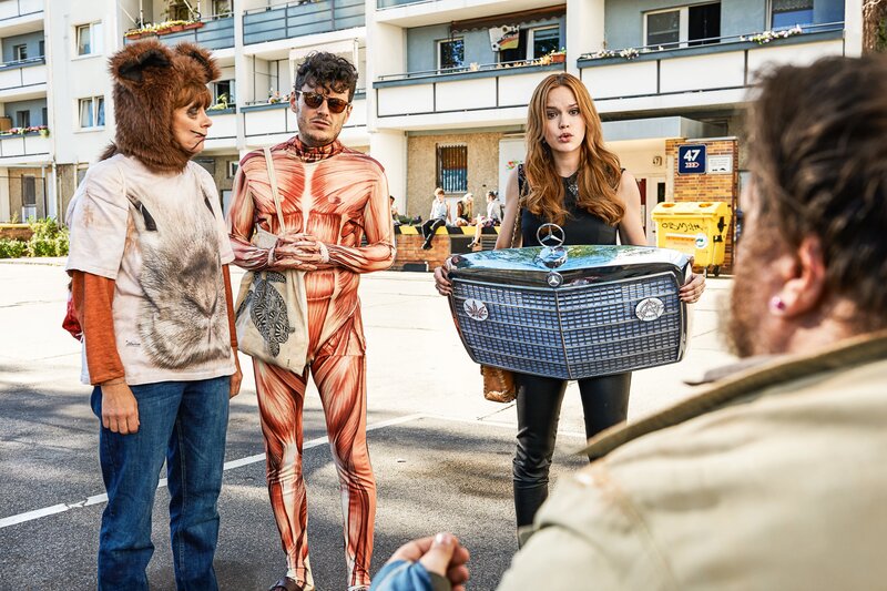 Marc Benjamin (Benjamin Schwarz), Emilia Schüle (Anabel von Schlacht), Jannis Niewöhner (Yann), Caro Cult (Aura Schlonz), Iris Berben (Trixi von Schlacht)..Bild: © ORF