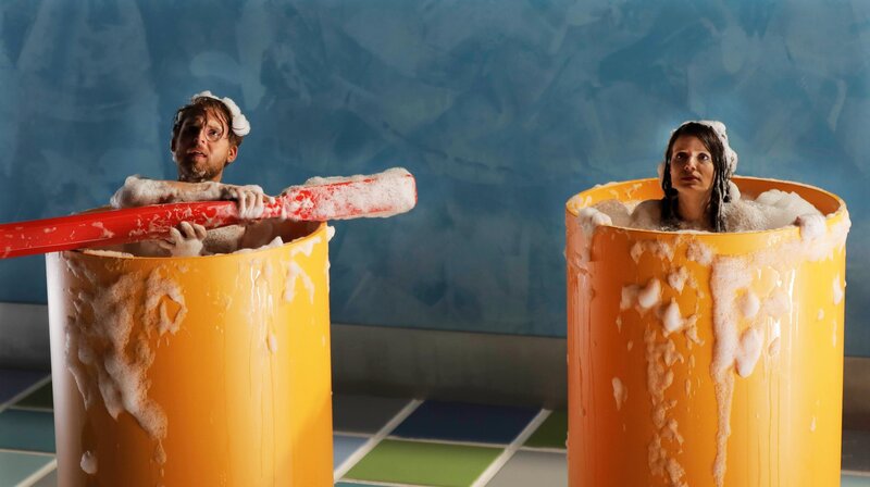 L-R: Peter Vorndran (Axel Stein) and Sandra Vorndran (Julia Hartmann)Bild: © ORF/Sony Pictures