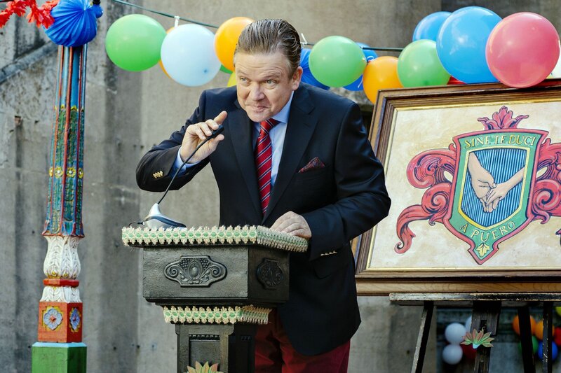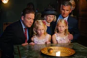 L-R: Schulrat Henning (Justus von Dohnányi), Tochter des Investors 1 (Annika Becker) und Tochter des Investors 2 (Marie Becker)Bild: © ORF