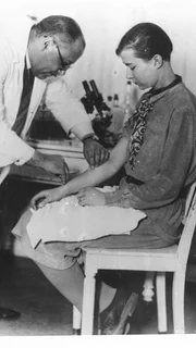Dr Theodor Morell gibt einer Patientint eine Spritze Die Verwendung des sendungsbezogenen Materials ist nur mit dem Hinweis und Verlinkung auf RTL+ gestattet.Bild: © RTL / Waddell Media