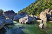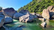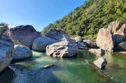 Große Felsen im Rio Cangrejal im Nationalpark Pico Bonito in HondurasBild: © Jessica Szczakiel/Susanne Brand / Große Felsen im Rio Cangrejal im Nationalpark Pico Bonito in Honduras