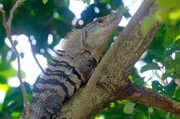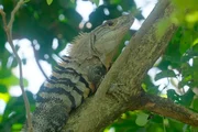 Utila-Leguan auf einem Baum auf der Insel Utila.Bild: © Jessica Szczakiel/Susanne Brand / Utila-Leguan auf einem Baum auf der Insel Utila