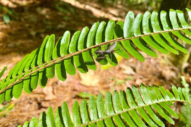 Eine Gottesanbeterin auf einem Farn im Celaque Nationalpark in Honduras.Bild: © ZDF/arte, Jessica Szczakiel, Susanne Brand
