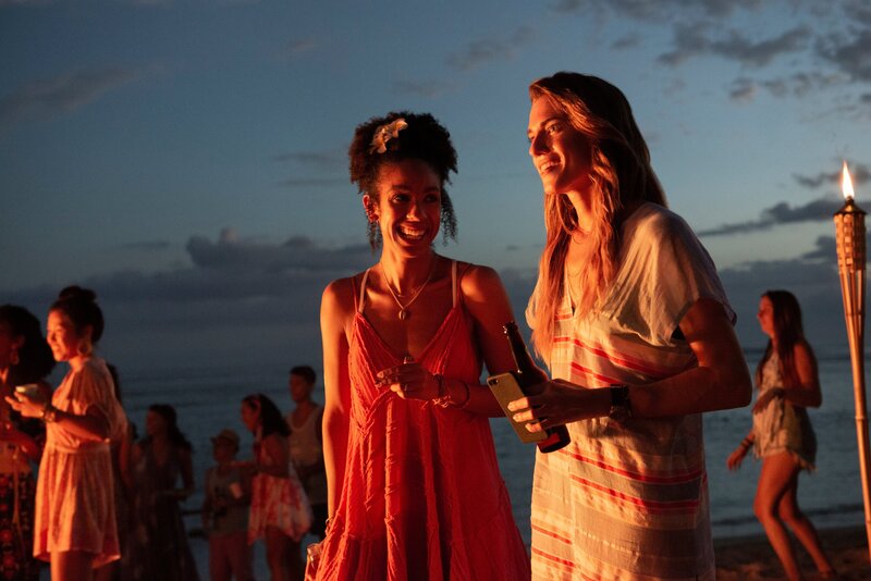 Bei der Strandparty am Abend vor Pascales (Pearl Mackie, l.) Hochzeit, trifft Sara (Allison Williams, r.) wieder auf ihren Ex-Freund.Bild: © Kelly Walsh / ZDF