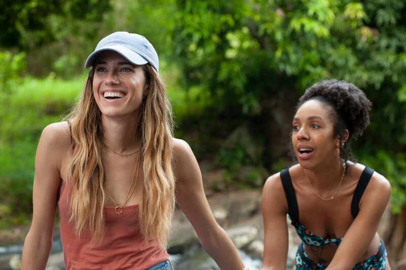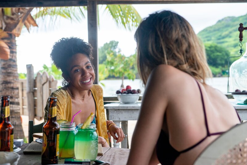Pascale (Pearl Mackie, r.) überredet Sara (Allison Williams, l.) dazu, am Tag vor der Hochzeit noch ein Bad in einer malerischen Lagune auf Mauritius zu nehmen.Bild: © Kelly Walsh
