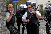 Weil Polizist Angel (Simon Pegg, l.) mit seiner Perfektion weniger diensteifrige Kollegen und Vorgesetzte in Verlegenheit brachte, wird er von London ins denkbar langweilige und verbrechensfreie Provinzkaff Sanford versetzt. Doch auch dort zeigt er Engagement ...Bild: © KinoweltTV