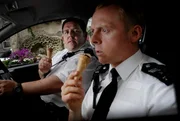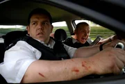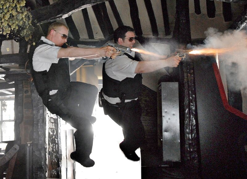Der erste Einsatz geht gründlich in die Hose: Angel (Simon Pegg, l.) und sein dilettantischer Kollege Danny (Nick Frost).Bild: © KinoweltTV