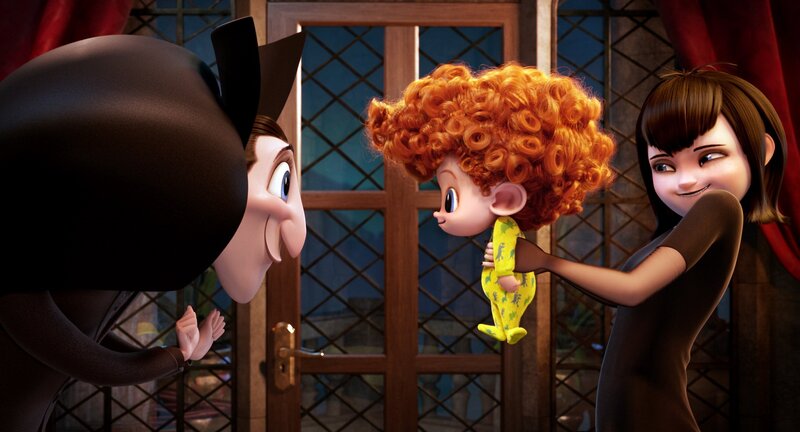 Dracula (l.) hofft, dass sich herausstellt, dass Mavis' Sohn Dennis (Mitte) ein Vampir ist, doch bis jetzt gibt es in Dennis noch keine Anzeichen - ob sich das noch ändert?
