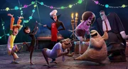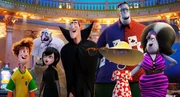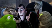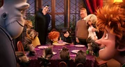 Dracula (Mitte) hat eine verrückte Gruppe von Familie und Freunden im Hotel Transsilvanien um sich geschart. Wenn sich nun noch herausstellt, dass Enkel Dennis (5.v.l.) ein Vampir ist, ist seine Welt perfekt!