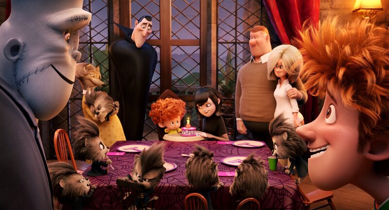 "Hotel Transsilvanien", Graf Dracula will als alleinerziehender Vater seine Tochter Mavis vor der gefährlichen Welt der Menschen schützen. Er baut ein altes Schloss zu einem 5-Sterne-Hotel um, in dem es Monstern an rein gar nichts fehlen soll. Und so tummeln sich bald Familie Werwolf, Frankenstein, der Unsichtbare und viele andere ungeheure Gestalten an dem paradiesischen Zufluchtsort. Als sich der junge Rucksacktourist Jonathan in das Hotel verirrt, ist das Chaos perfekt, denn Hals über Kopf verliebt sich Mavis in den ungebetenen Gast.Im Bild: Veroeffentlichung fuer Pressezwecke honorarfrei ausschliesslich im Zusammenhang mit oben genannter Sendung oder Veranstaltung des ORF bei Urhebernennung. Foto: ORF/Sony Pictures. Anderweitige Verwendung honorarpflichtig und nur nach schriftlicher Genehmigung der ORF-Fotoredaktion. Copyright: ORF, Wuerzburggasse 30, A-1136 Wien, Tel. +43-(0)1-87878-13606