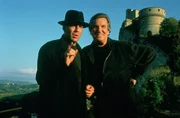 Um seinen Anteil an der Beute zu ergattern, jagt der abtrünnige CIA-Agent George Kaplan (James Coburn, l.) dem Meisterdetektiven Hudson Hawk (Bruce Willis, r.) hinterher ...Bild: © Kabel Eins Classics