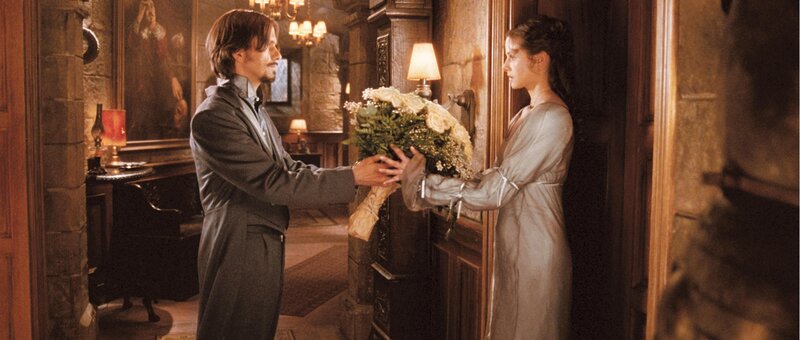 Als Entschuldigung für sein unmögliches Benehmen beim Ball bittet Julius (Christoph Maria Herbst, l.) Konstanzia (Ellenie Salvo González, r.), Leonora Blumen zu überbringen ...Bild: © Constantin Film Lizenzbild frei