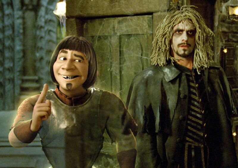 HUI BUH, DAS SCHLOSSGESPENST - Plakatmotiv - 1399: Als Ritter Balduin beim Kartenspiel betrügt, will sein Gegner ihn erstechen. Doch gerade, als dieser den Degen zückt, wird Balduin von einem Blitz getroffen und verwandelt sich in Hui Buh (vorne), das Schlossgespenst.Bild: © Constantin Film