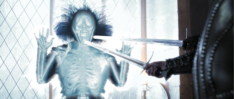 Bereits der erste Versuch von Hui Buh (Michael "Bully" Herbig), den unerwünschten Besucher König Julius zu Tode zu erschrecken, scheitert kläglich ...Bild: © Constantin Film