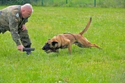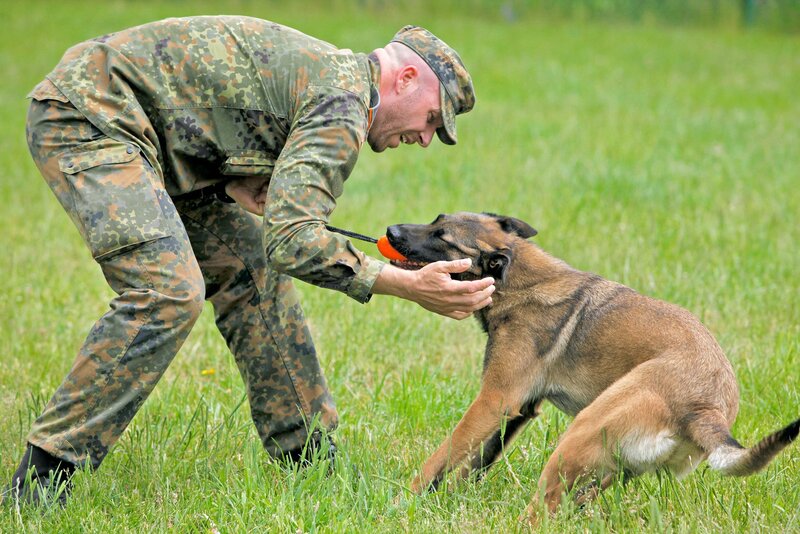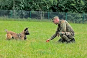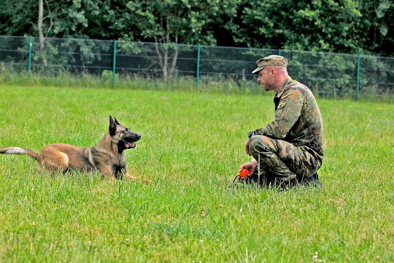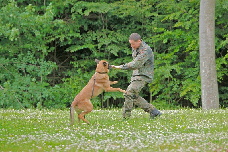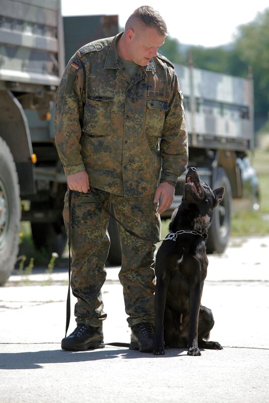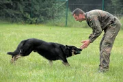 Bundeswehr-Soldat Zienow mit Diensthund beim Training.Bild: © HR/SWR/Sebastian Bäumler