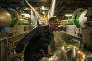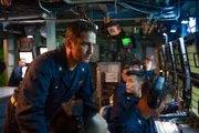 Captain Joe Glass (Gerard Butler, l.) hofft darauf, dass Belford (Taylor John Smith, r.) das vermisste U-Boot mittels Sonarortung finden kann.Bild: © Jack English