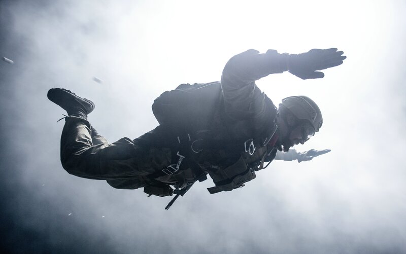 Bill Beaman (Toby Stephens) und sein SEALs-Team springen per Fallschirm am Einsatzort ab.Bild: © 3+
