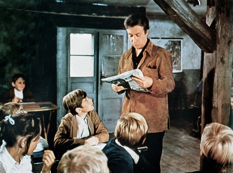 Peter Bach (Peter Alexander, stehend), zweifacher Doktor, ist versehentlich als Lehrer an der Zwergschule von Tuttelbach gelandet, fühlt sich aber mit seinem Neffen Jan (Heintje, 4. v. li.) sehr wohl dort. Weiteres Bildmaterial finden Sie unter www.br-foto.de.Bild: © HR/Degeto