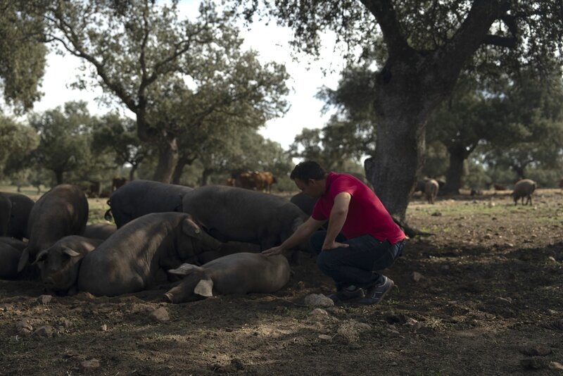 Iberischer Schinken gilt international als Produkt der Spitzenklasse und hat dazu beigetragen, dass Spanien einer der größten Schweinefleischproduzenten Europas geworden ist. "Sein einzigartiges Aroma überflutet den Gaumen!", sagt Florencio Sanchidrián, der die Spezialität als professioneller Schinken-Aufschneider schon im Weißen Haus präsentiert hat. Bereits am Glanz der luftgetrockneten Keule kann Sanchidrián erkennen, ob das Schwein mit Eicheln gefüttert wurde. Doch längst nicht alle Schweine wachsen in idyllischen Eichenhainen auf. Denn die Aufzucht dort ist schwierig geworden. Durch die steigenden Temperaturen der letzten Jahre tragen die Bäume deutlich weniger Eicheln. Das bedeutet für Schweinebauern wie Rafael Muñoz weniger Schweine und weniger Umsatz. Trotzdem möchte der junge Bauer aus Andalusien die traditionelle Aufzucht der schwarzen Schweine, die schon römische Legionäre vor rund 2.000 Jahren in der Extremadura praktizierten, so lange wie möglich fortführen. Doch viele Züchter von Iberico-Schweinen sind auf Massentierhaltung umgestiegen. Die intensive Schweinezucht in Spanien hat mittlerweile massive Auswirkungen auf die Umwelt. Besonders deutlich ist das in Murcia zu beobachten, am Mar Menor, der größten Salzwasserlagune Europas. Schweinezucht und Landwirtschaft in der Region haben der Lagune zugesetzt. Das zeigen hohe Nitratwerte im Wasser. Selbst die Europäische Union hat Spanien deshalb bereits verklagt.