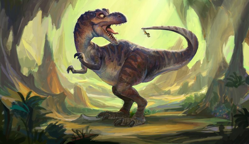 Säbelzahneichhörnchen Scrat ist von dem mächtigen Gebiss des Dinosauriers schwer beeindruckt.Bild: © RTL