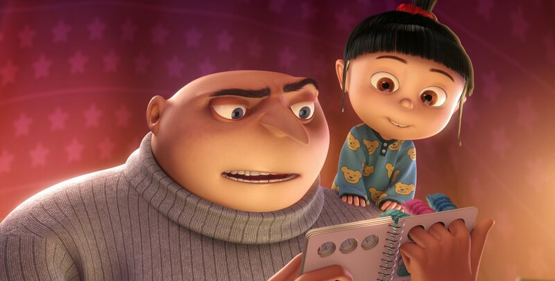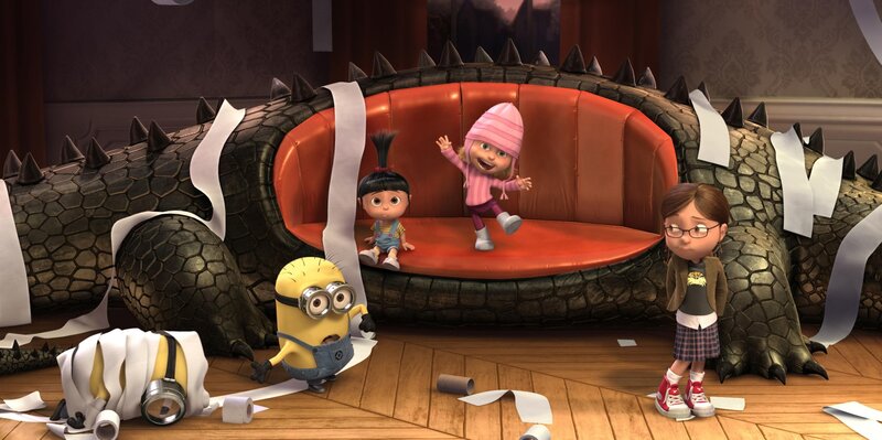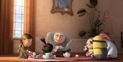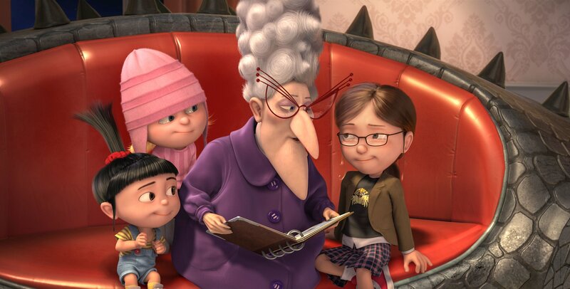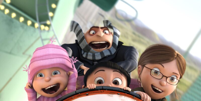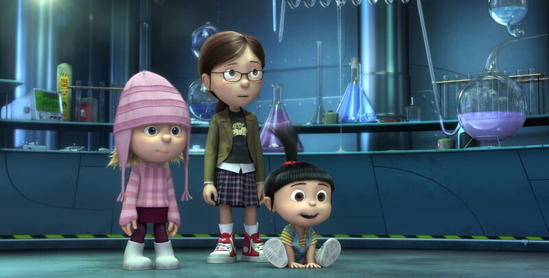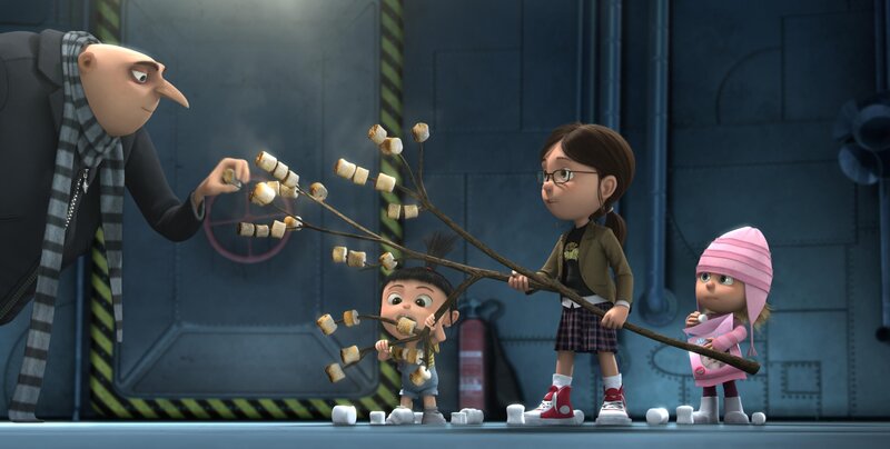 Immer mehr Familienrituale halten mit den Mädchen Einzug ins Grus (l.) vormaliges Junggesellendasein - Agnes, Margo und Edith (v.l.n.r.) bieten dem Superschurken selbst geröstete Marshmallows an - hm!