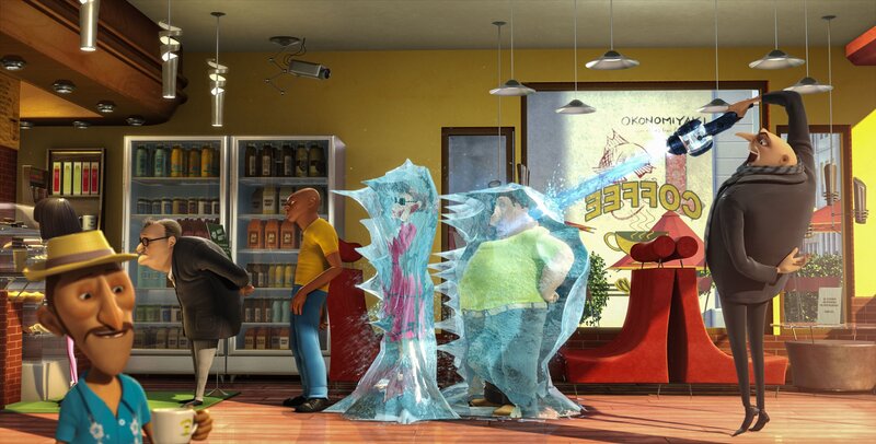 Ausgerüstet mit einem Arsenal aus Wunderstrahlern und kampfbereiten Allzweckfahrzeugen ist der bitterböse Gru (l.) auch von der Polizei nicht zu stoppen ...