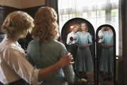 Modeschneiderin Margarete Oelkers (Nadja Uhl, l.) bei der Anprobe eines neuen Kleides für Frau Ahrens (Katja Flint, r.), die Gattin des Amtsarztes.Bild: © ZDF/Václav Sadílek