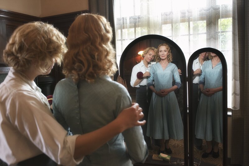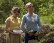 Margarete Oelkers (Nadja Uhl, r.) steht zusammen mit der jungen Antje Eversen (Janina Fautz, l.) am Grab von Antjes Mutter. Antje will einen Gedenkstein auf die namelose Grabstätte legen.Bild: © ZDF und Václav Sadílek
