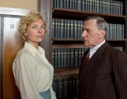 Margarete Oelkers (Nadja Uhl) verlangt von Amtsarzt Dr. Ahrens (Rudolf Kowalski) eine Bescheinigung, dass sie nie schizophren war. Sie wirft ihm vor, sie ohne Grund in die Klinik Wehnen eingewiesen zu haben.Bild: © ZDF/Václav Sadílek