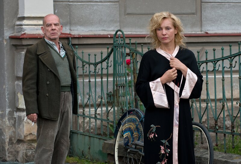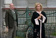 Misstrauisch betrachtet Herr Windhorst (Martin Wuttke) seine Nachbarin Margarete Oelkers (Nadja Uhl).Bild: © ZDF/Václav Sadílek