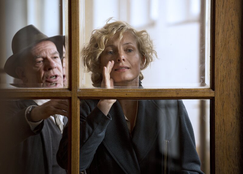 Margarete Oelkers (Nadja Uhl) verlangt von Amtsarzt Dr. Ahrens (Rudolf Kowalski) eine Bescheinigung, dass sie nie schizophren war. Sie wirft ihm vor, sie ohne Grund in die Klinik Wehnen eingewiesen zu haben.Bild: © ZDF und Václav Sadílek